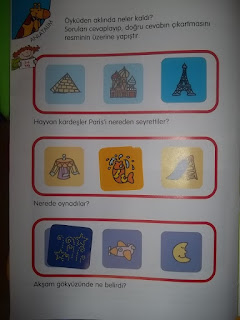 Dün akşam canı sıkılıyordu ne oynasak ne yapsak diye düşündük hiç bir şey beğenemedi.Ona olmaz buna olmaz dedi.Aklıma dergiler geldi hemen bir tane çıkardım ooo yaşasın annem dergi almış diyerek çığlıklar attı :) Hemen çalışma masasında yerini aldı anne hazırım hadi yapalım dedi.Bunu yapınca bir daha al anne demeyi de unutmadı :) Dergideki hikayeyi dikkatlice dinledi arka sayfadaki soruları hemen cevapları etiketlerini bulup yapıştırdı..Yapamıyacığını düşündüğüm şeyleri bu defa atlayıp geçmeme izin vermedi.Ben sayfaları atlarken anne bunları da yapalım dedi ama onlar şimdilik senin yaşına uygun değil desem de dinlemedi.Yapmak konusunda ısrar edince açtık sayfaları anlattım.1 aydır dergi yapmadığımızdan dergiyi baya özlemiş.Dergi çıkarmıyordum çünkü hafta sonları okuldan ödev getiriyordu onları yapıyorduk.Ve meraklı minik dergisini almıştım.Ecrinin bu kadar özlediğini bilseydim daha önce çıkartırdım :))