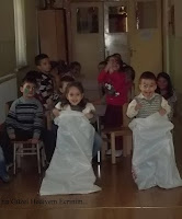 Annem ile babam beni çuval yarışı yaparken çok merak ediyordu.Öğretmenim annemleri düşünerek doğum günümde çuval yarışı yaptırdı..