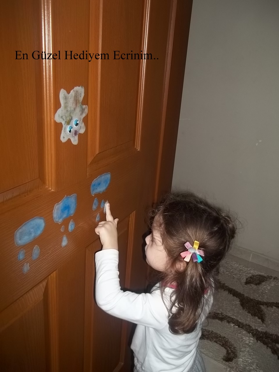 Bulutları annem kalemle çizdi ben pamukları yapıştırdım.Yağmur damlalarını annem kesti biz babamla birlikte yapıştırdık..
