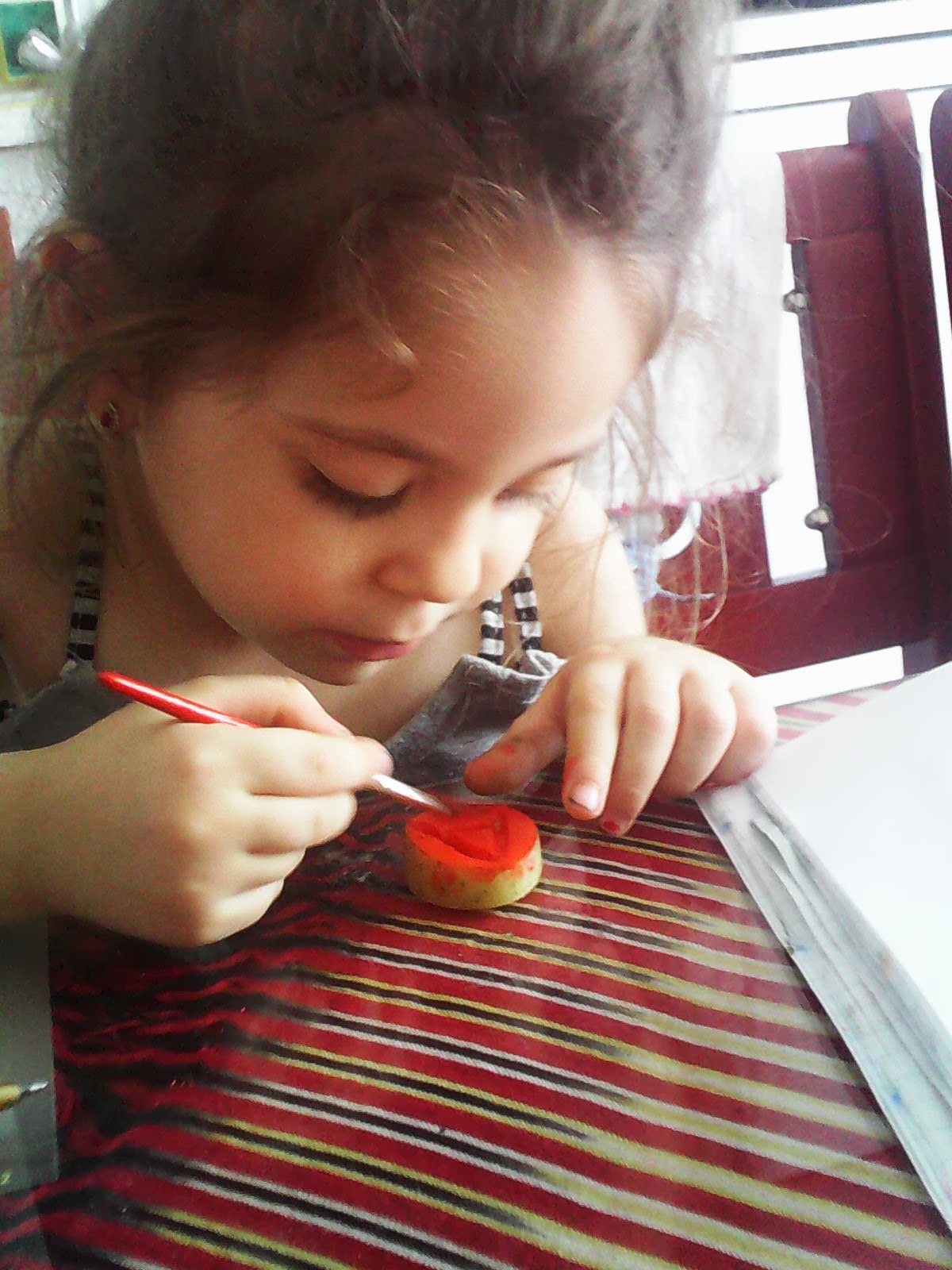 Patates baskısı yaptık...Okulda soğan baskısı yaptığımızı anlattım anneme sonraki günlerde soğan baskısı da yapacağız..