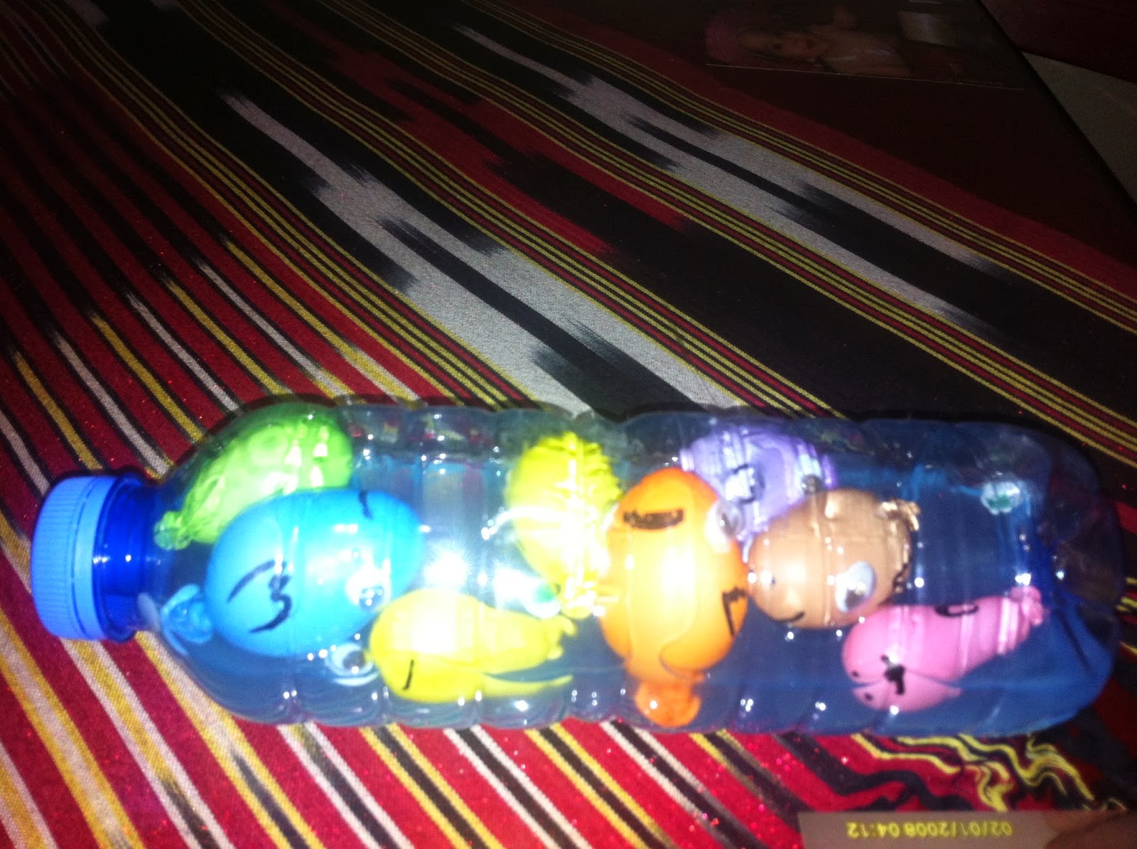 Bu çok keyif alarak yaptığımız bir etkinlikti.. Parmak balonları şişirip üzerlerine hareketli göz yapıştırdık kalemle yüzgeçlerini ve ağızlarını çizdik şişeye atıp yüzdürdük ..