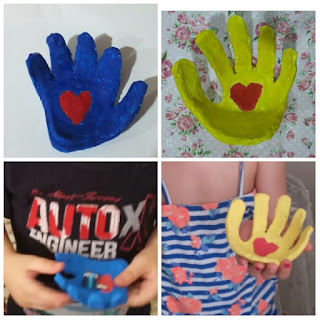 Babalar günü için babamıza tuz seramiğinden el izimizi yapıp içinde mektup ve kol düğmesi hediye etmiştik..