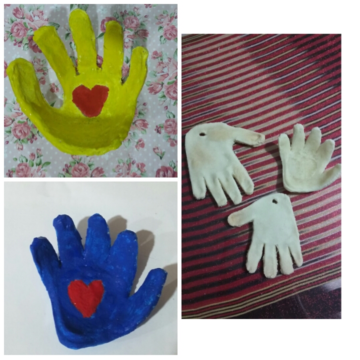 Babalar günü için babamıza tuz seramiğinden el izimizi yapıp içinde mektup ve kol düğmesi hediye etmiştik..