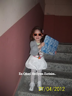 İşte bir kokoş fotoğraf daha :) Belimde kemer diye gördüğünüz aslında benim tacım ama ben kemer yaptım kendime çok ta güzel durdu :) Annemde beni kırmayıp takmama izin veriyordu :) Sanırım annemde beğendi :)