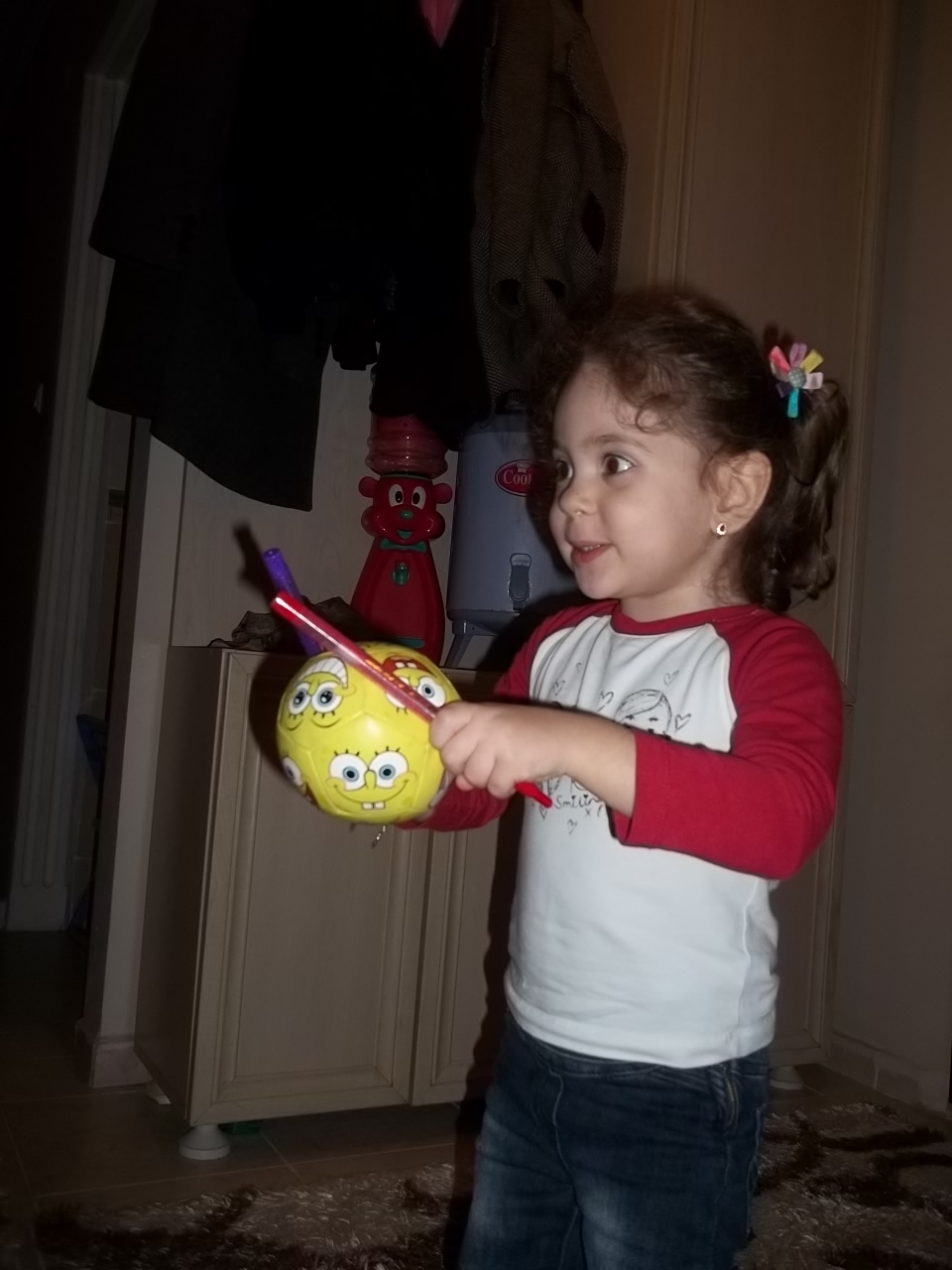 Bu oyunu da ben buldum topu kalemle düşürmeden tutarak koşuyoruz.Gündüz annemle akşam babamla oynuyoruz bu oyunu :))