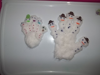 Annemin elinden olan kardan adamların şapka ve ağızlarını annem yaptı.