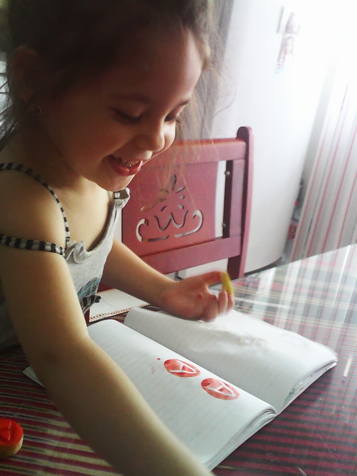 Patates baskısı yaptık...Okulda soğan baskısı yaptığımızı anlattım anneme sonraki günlerde soğan baskısı da yapacağız..