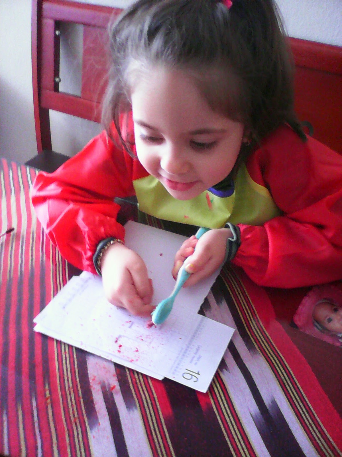 Son zamanlarda harflere yazmaya okumaya merakım oldukça fazla ..Anneme harfler konusunda ısrarcı davranıyorum annemde ısrar edince söylüyor alfabedeki harflerin bir kısmını tanıyorum. Okulda sorun yaşamamam adına pek gösterme taraftarı değiller..O yüzden sesli harflerle devam ediyoruz..