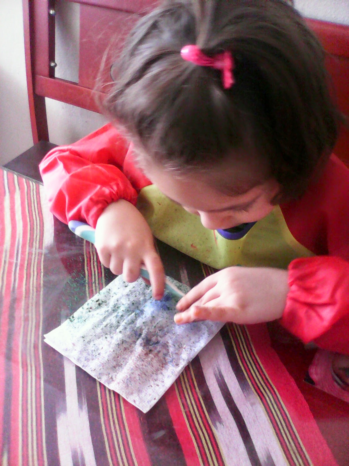 Folyodan A ile E harfi yaparak parmak boyası ile boyadım .. Bana kalsa Azra Ecrin yazıp boyamak istiyordum..Annem şimdilik isimim baş harflerimin yeterli olacağını başka zaman devam edeceğimiz söyleyince kabul ettim..
