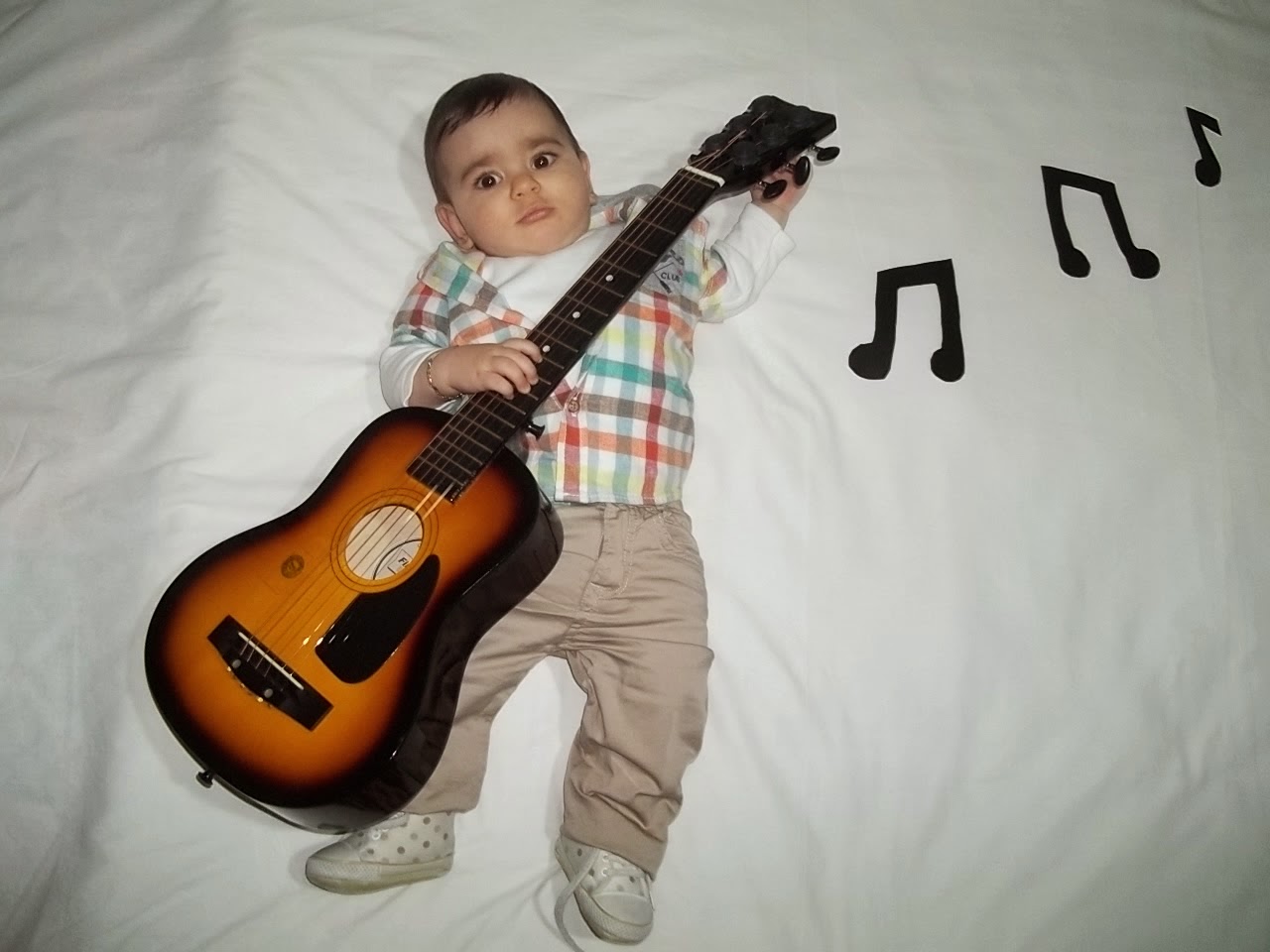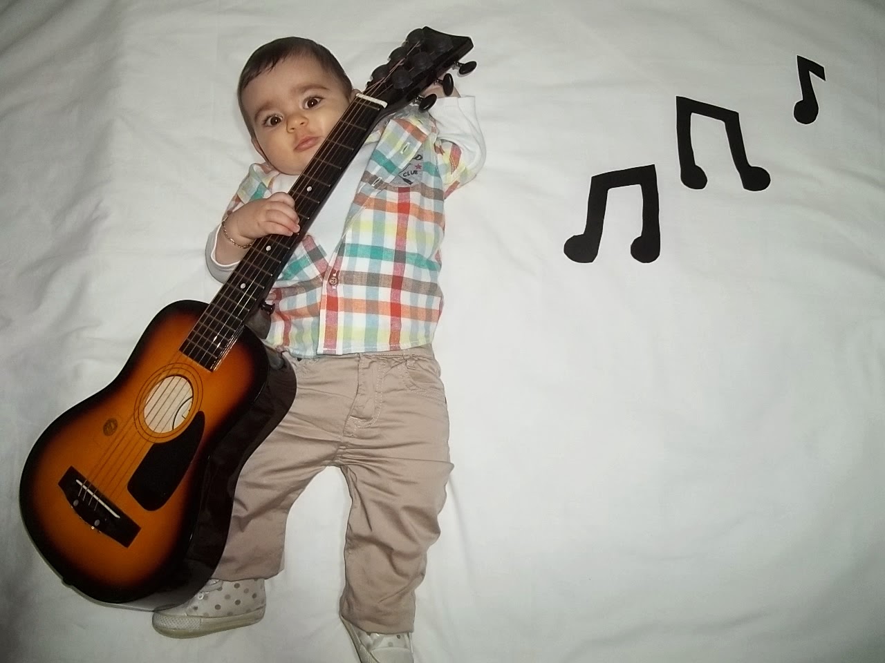 Gitar kızı gitarın tellerini tıngırdattıkça değişik tonlarda müzık egzersizleri yapıyor...
